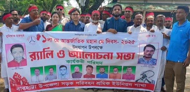 শ্রমিক-মালিক এক হয়ে, গড়ব এদেশ নতুন করে’ এই প্রতিপাদ্যে নেত্রকোনার বারহাট্টায় মহান মে শ্রমিক দিবস এবং জাতীয় পেশাগত স্বাস্থ্য ও সেইফটি দিবস পালিত উপলক্ষ্যে বর্ণাঢ্য র‍্যালি ও আলোচনা সভা অনুষ্ঠিত হয়েছে।