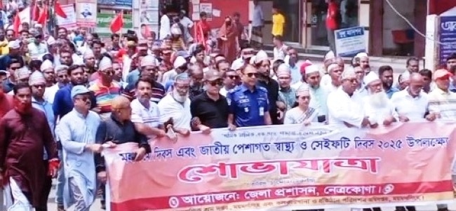 শ্রমিকদের ন্যায্য অধিকার আদায়, কর্মস্থলে নিরাপদ পরিবেশ এবং মালিক শ্রমিক সুসম্পর্ক বজায় রেখে বৈষম্যমুক্ত সমৃদ্ধ বাংলাদেশ গড়ে তোলার দীপ্ত অঙ্গীকার নিয়ে ‘শ্রমিক-মালিক এক হয়ে, গড়ব এদেশ নতুন করে’ এই প্রতিপাদ্যে জেলা প্রশাসনের উদ্যোগে নেত্রকোনায় মহান মে দিবস এবং জাতীয় পেশাগত স্বাস্থ্য ও সেফটি দিবস পালিত হয়েছে।