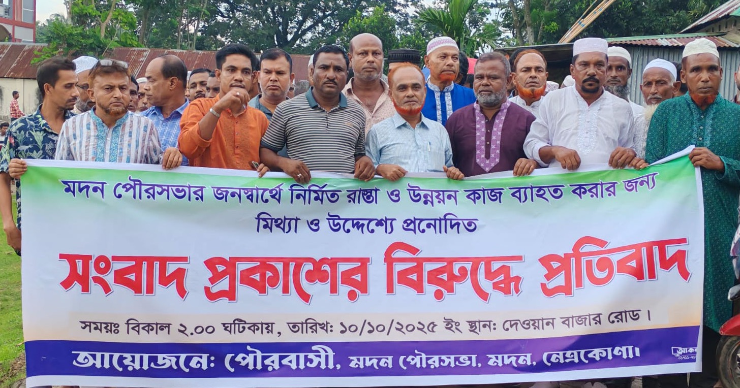 ঘটনার জের ধরে গত বৃহস্পতিবার ঠিকাদারের প্রতিনিধি আব্দুল্লাহ আল রোমান তিন সাংবাদিকের বিরুদ্ধে চাঁদা দাবির অভিযোগে থানায় লিখিত অভিযোগ দেন। এরপর শুক্রবার বিকেলে পৌরসভার দেওয়ানবাজার রোড এলাকায় ‘মদন পৌরবাসীর’ ব্যানারে একটি মানববন্ধন ও বিক্ষোভ অনুষ্ঠিত হয়। সেখানেই মদন পৌর বিএনপির সভাপতি কামরুজ্জামান চন্দন সাংবাদিকদের বিরুদ্ধে চাঁদাবাজির অভিযোগ তুলে বক্তব্য দেন। তাঁর প্রায় দেড় মিনিটের বক্তব্যে তিনি ওই তিন সাংবাদিকের নাম উল্লেখ করে বলেন, ‘ভবিষ্যতে আর যদি এটা নিয়ে কিছু করা হয়, প্রয়োজনে হাত কেটে দেওয়া হবে, হাত।’ এ সময় তাঁর সঙ্গে থাকা মানববন্ধনকারীরা হাততালি দিয়ে স্লোগান দেন।