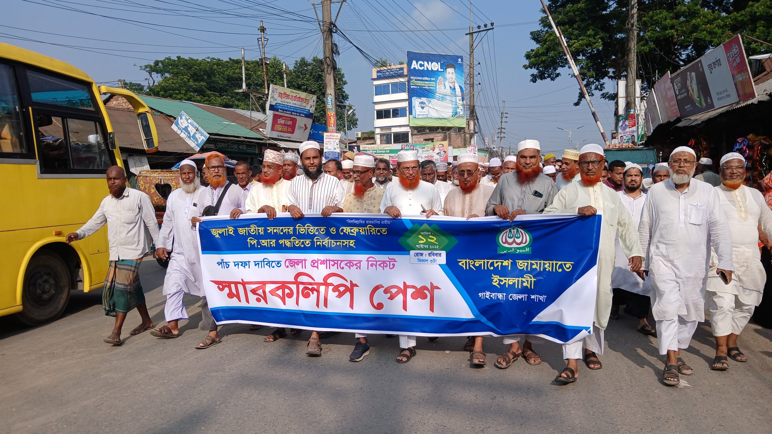 বাংলাদেশ জামায়াতে ইসলামীর জুলাই জাতীয় সনদের ভিত্তিতে ও ফেব্রুয়ারিতে পিআর পদ্ধতিতে নির্বাচন সহ পাঁচ দফা দাবিতে জেলা প্রশাসকের নিকট স্মারকলিপি প্রদান করেছে গাইবান্ধা জেলা শাখা।