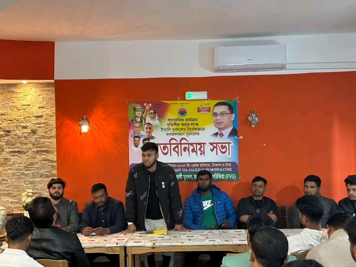 বাংলাদেশ জাতীয়তাবাদী যুবদল ইতালি কেন্দ্রীয় কমিটির নির্দেশে ইতালির বিভিন্ন প্রভিন্সে যুবদল কমিটি গঠনের লক্ষ্যে মনফালকনে গরিঝিয়া যুবদলের উদ্যোগে অদ্য রোজ রবিবার মনফালকনের স্থানীয় একটি রেস্টুরেন্টে যুবদলের প্রায় শতাধিকের অধিক নেতাকর্মী নিয়ে এক মতবিনিময় সভা অনুষ্ঠিত হয়।