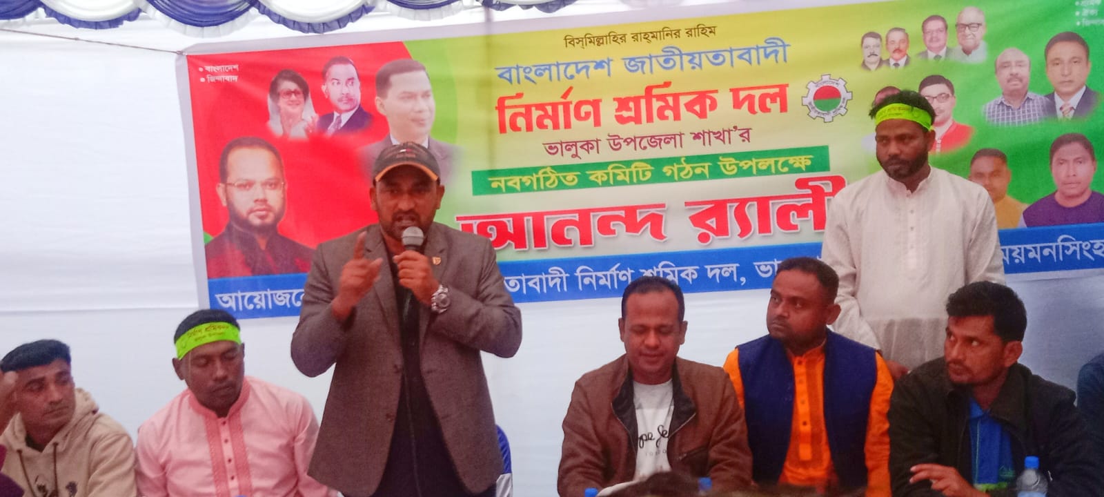 ময়মনসিংহের ভালুকায় বাংলাদেশ জাতীয়তাবাদী নির্মাণ শ্রমিকদল ভালুকা উপজেলা শাখার নবগঠিত কমিটি উপলক্ষে আনন্দ র্যালি ও আলোচনা সভা অনুষ্ঠিত হয়েছে। সোমবার (৩০ ডিসেম্বর) বিকেলে উপজেলা বিএনপির কার্যালয় থেকে একটি র্যালি ঢাকা ময়মনসিংহ মহাসড়ক প্রদক্ষিন শেষে জ্ঞানীর মোড় নামক স্থানে সংক্ষিপ্ত আলোচনা সভায় মিলিত হয়।