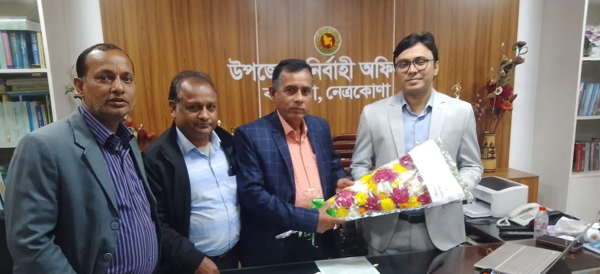 নেত্রকোনার বারহাট্টায় নবযোগদানকৃত উপজেলা নির্বাহী কর্মকর্তা (ইউএনও) মোঃ খবিরুল আহসানকে বাংলাদেশ শিক্ষক সমিতি বারহাট্টা উপজেলা শাখার পক্ষ থেকে ফুলেল শুভেচ্ছা ও মতবিনিময় অনুষ্ঠান অনুষ্ঠিত হয়েছে।